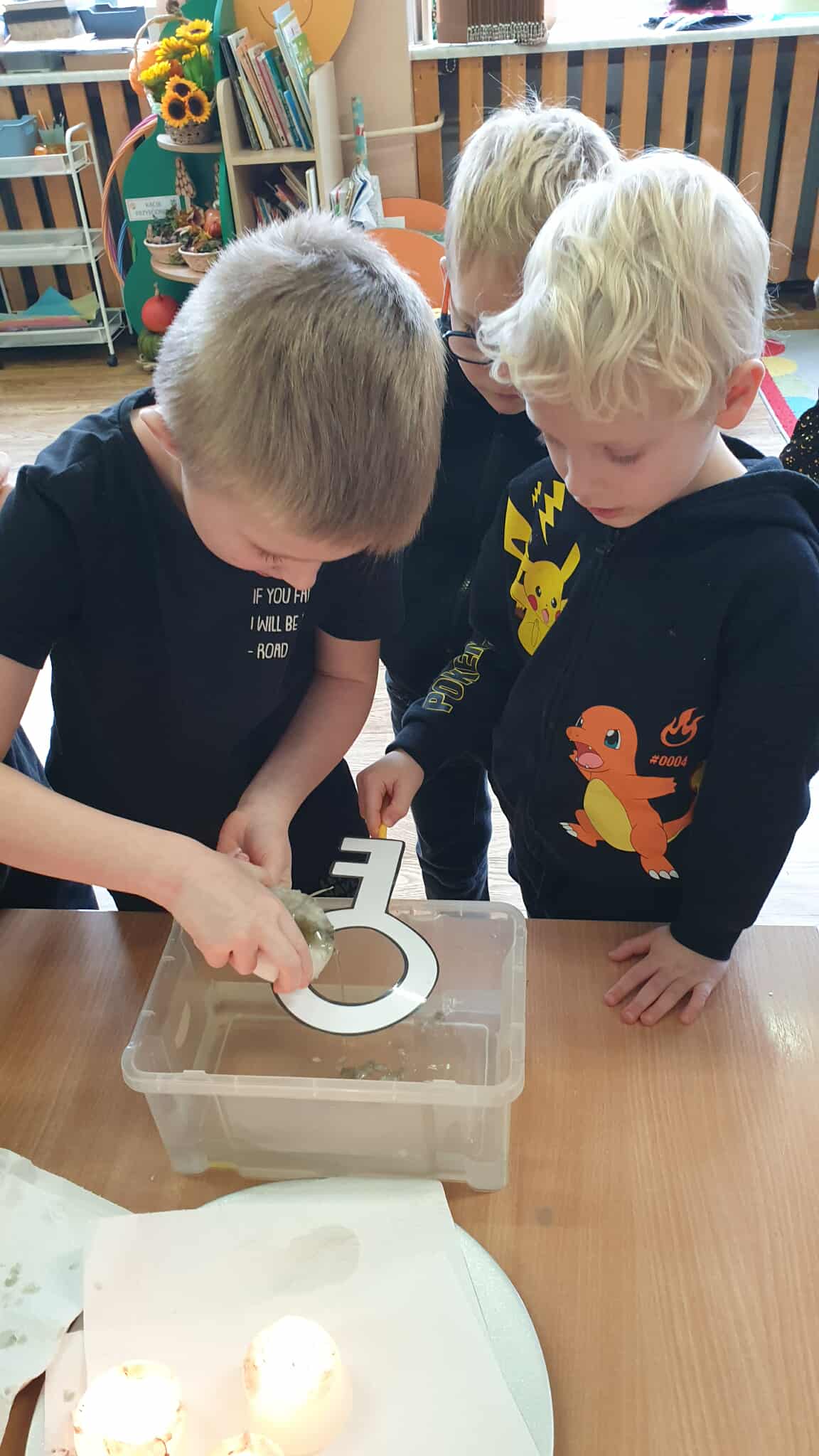 "Andrzejki" to dzień pełen dobrych życzeń dla Panów o imieniu Andrzej, ale też dzień wypełniony magią i wróżbami, w których próbujemy wyczytać tą bliższą i dalszą przyszłość... Dla naszych przedszkolaków był to jednak przede wszystkim świetny powód do zabawy połączonej z nauką i okazją do poznania dawnych tradycji pojawiła się bowiem m.in. zabawa, z wędrującymi do drzwi butami, lanie woskiem, serca pełne imion ukochanych w przyszłości i wiele, wiele innych atrakcji. Śmiechu, zachwytu i ciekawości czy wróżby się spełnią nie było końca.