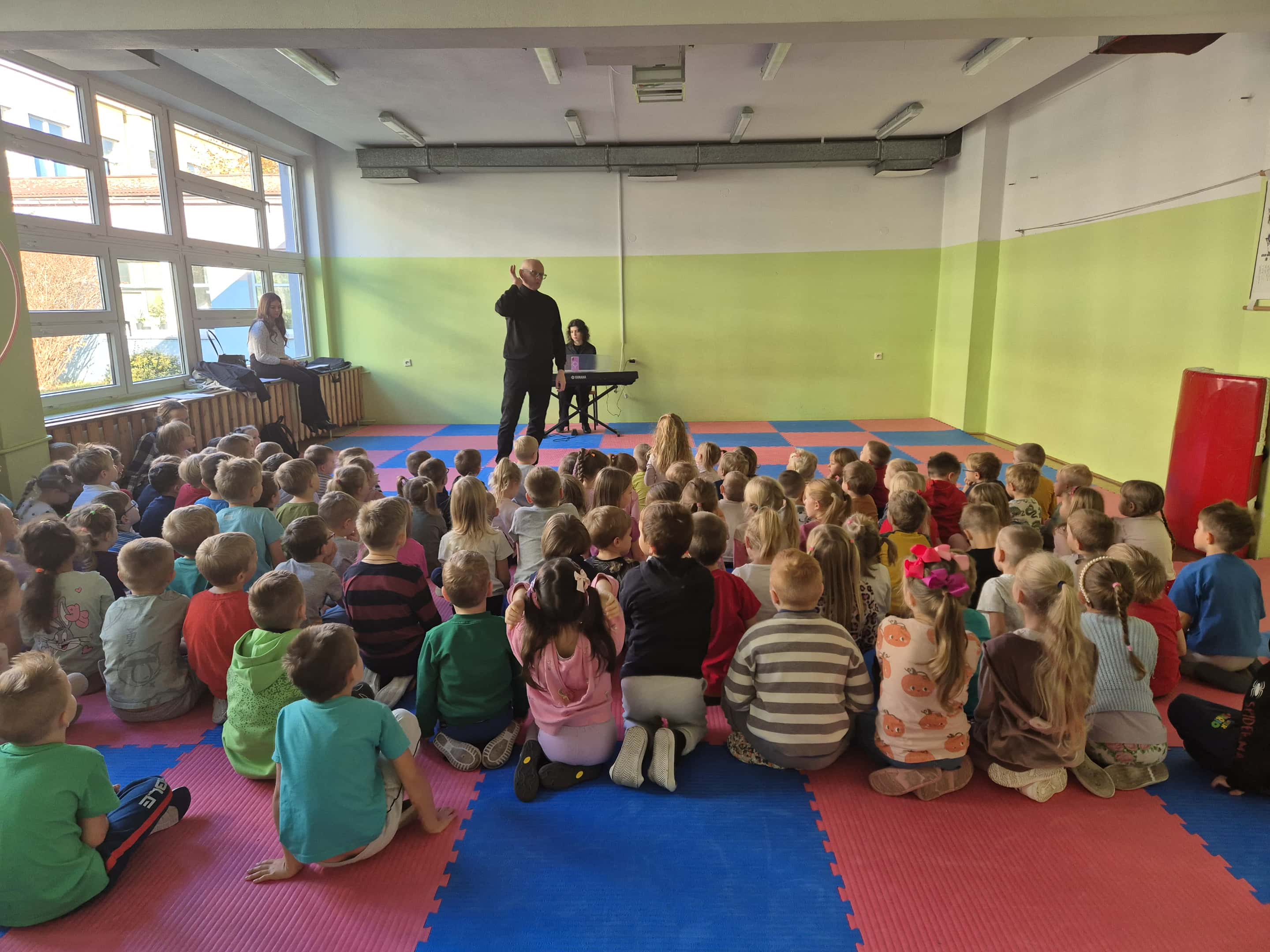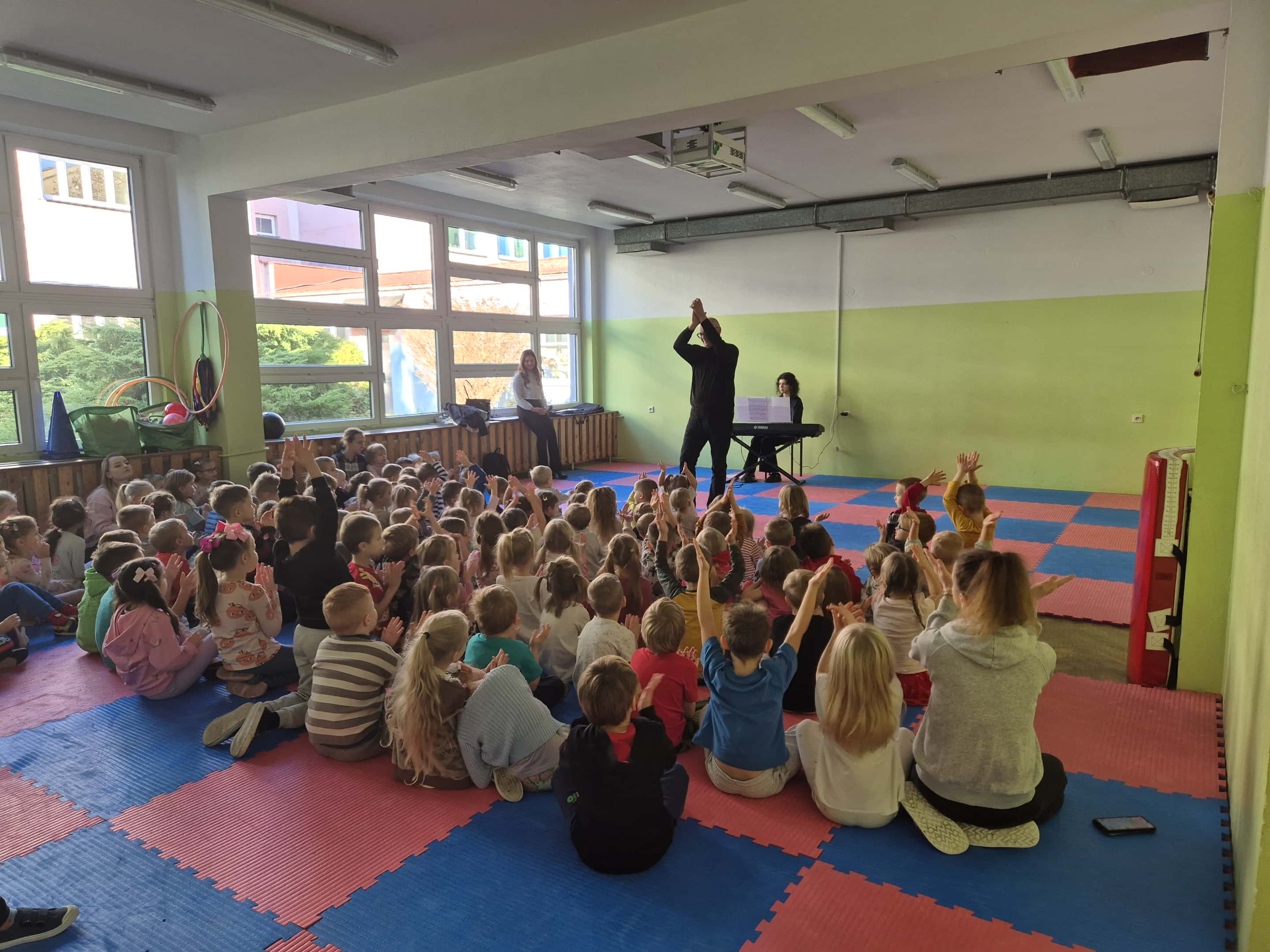 Tak jak w zeszłym roku szkolnym i w tym, w nasze przedszkolne mury będą regularnie wkraczać pracownicy Filharmonii Śląskiej. Poprzez cykliczne spotkania będą odkrywać przed dziećmi różne zagadnienia z zakresu muzyki. W miesiącu listopadzie tematem przewodnim spotkania był głos, jako instrument, który każdy z nas ma zawsze przy sobie. Dzieci miały okazję wysłuchać recitalu osoby, która profesjonalnie występuje na scenie i szkoli swój głos. Przedszkolaki miały również okazję samemu wykonać różnego rodzaju ćwiczenia na rozśpiewanie... i uznali, że jednak nie jest to takie łatwe w wykonaniu... Ale zabawa była udana!